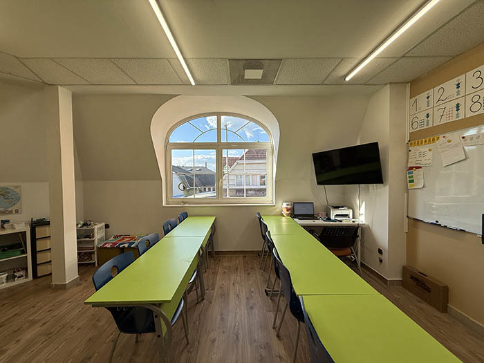 A tanterem oktatásra teljesen felszerelt, tábla és tv biztosított.